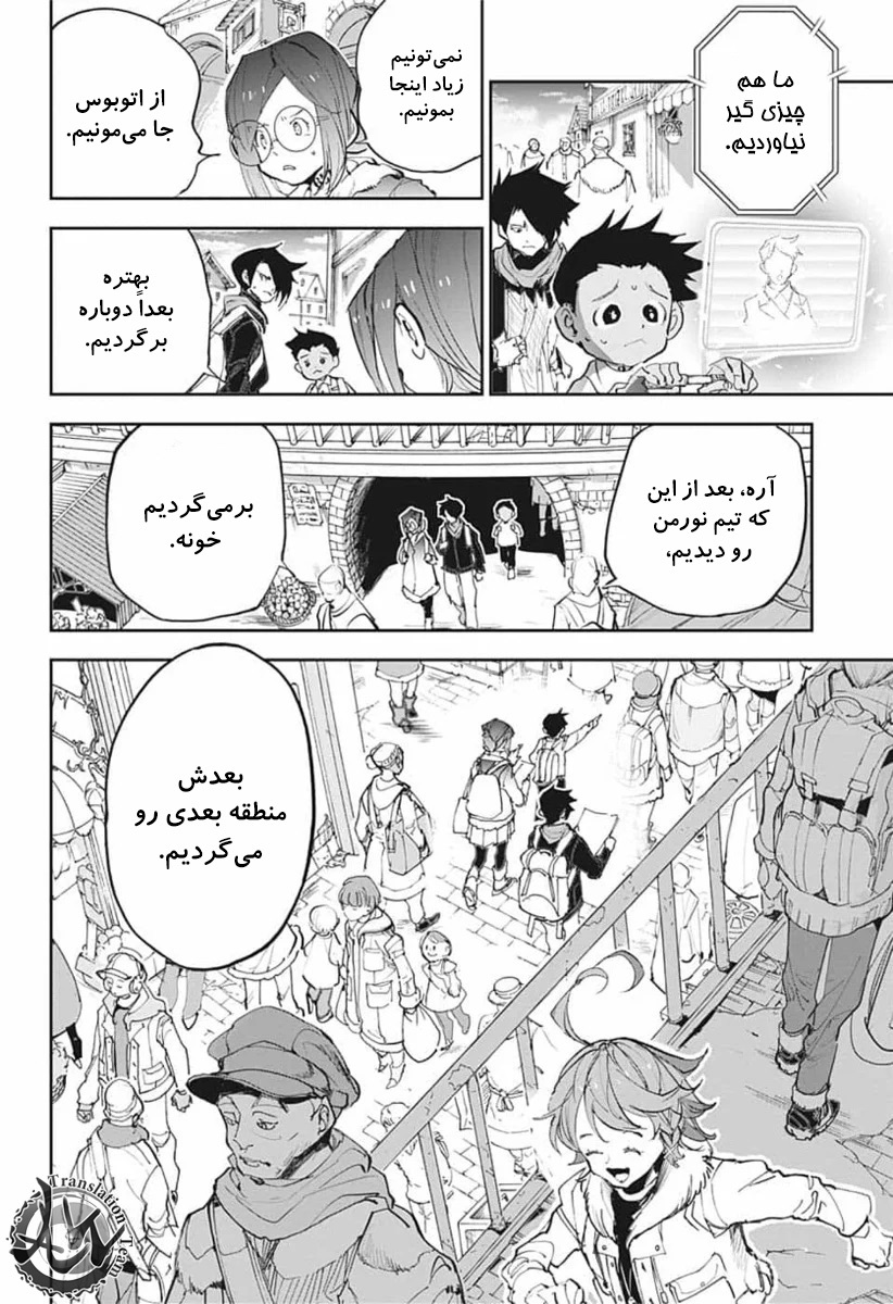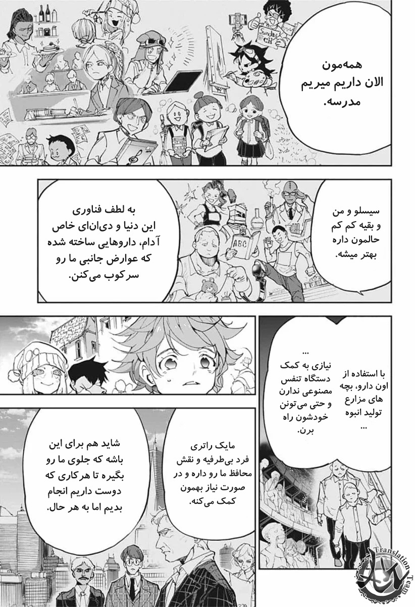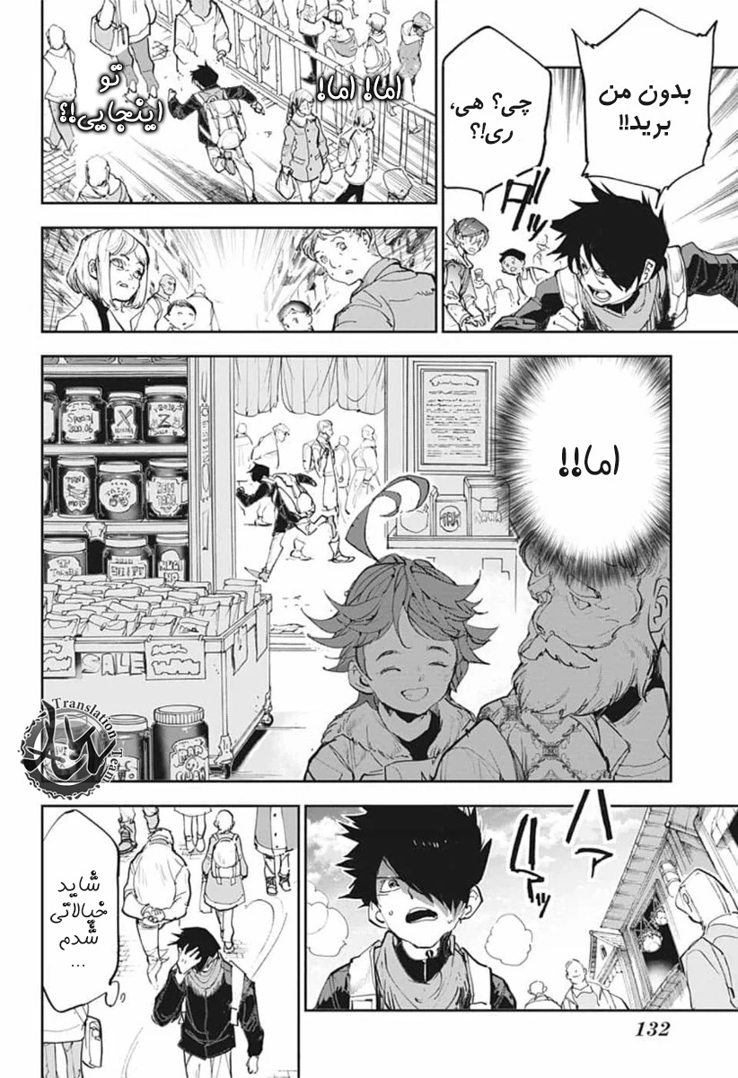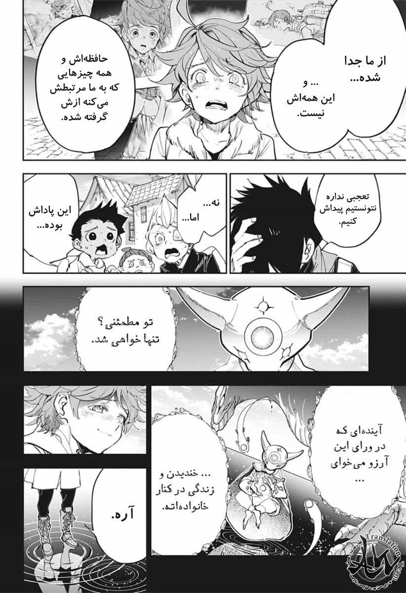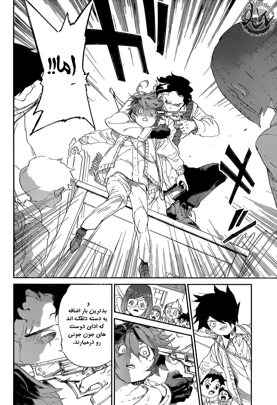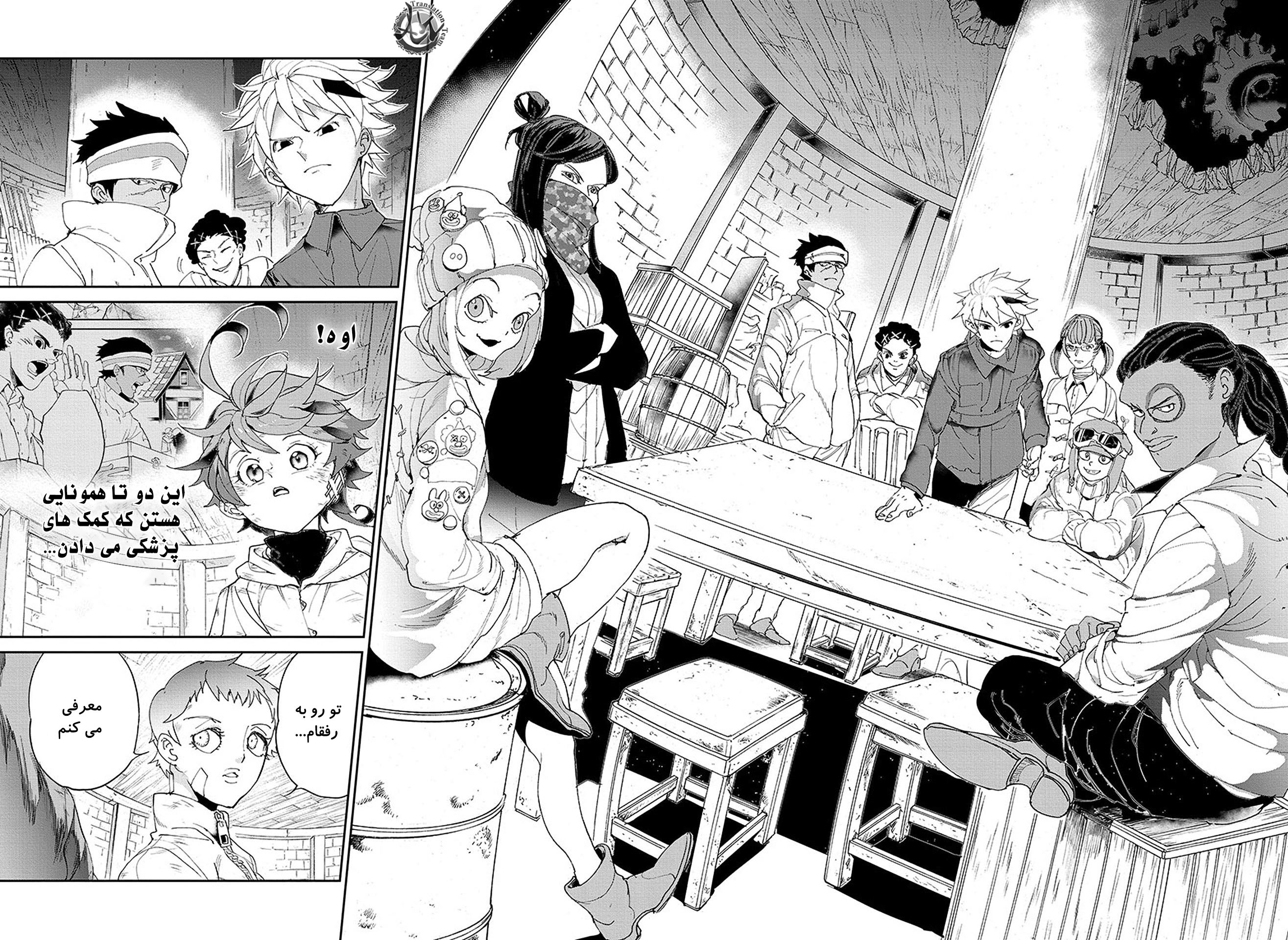 ولی ری میفهمه که اما از نقشه ی نورمن خوشش نیومده و میرن با نورمن حرف بزنن درست مثل انیمه اما فرقش اینه که توی انیمه میرن دنبال موجیکا و سونجو بگردن اما توی مانگا میرن به هفت دیوار و اگه بتونن پیمان جدید ببندن نورمن بیخیال نقشش میشه.
