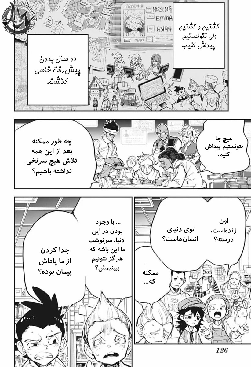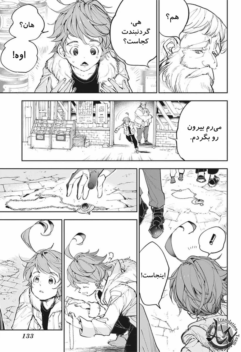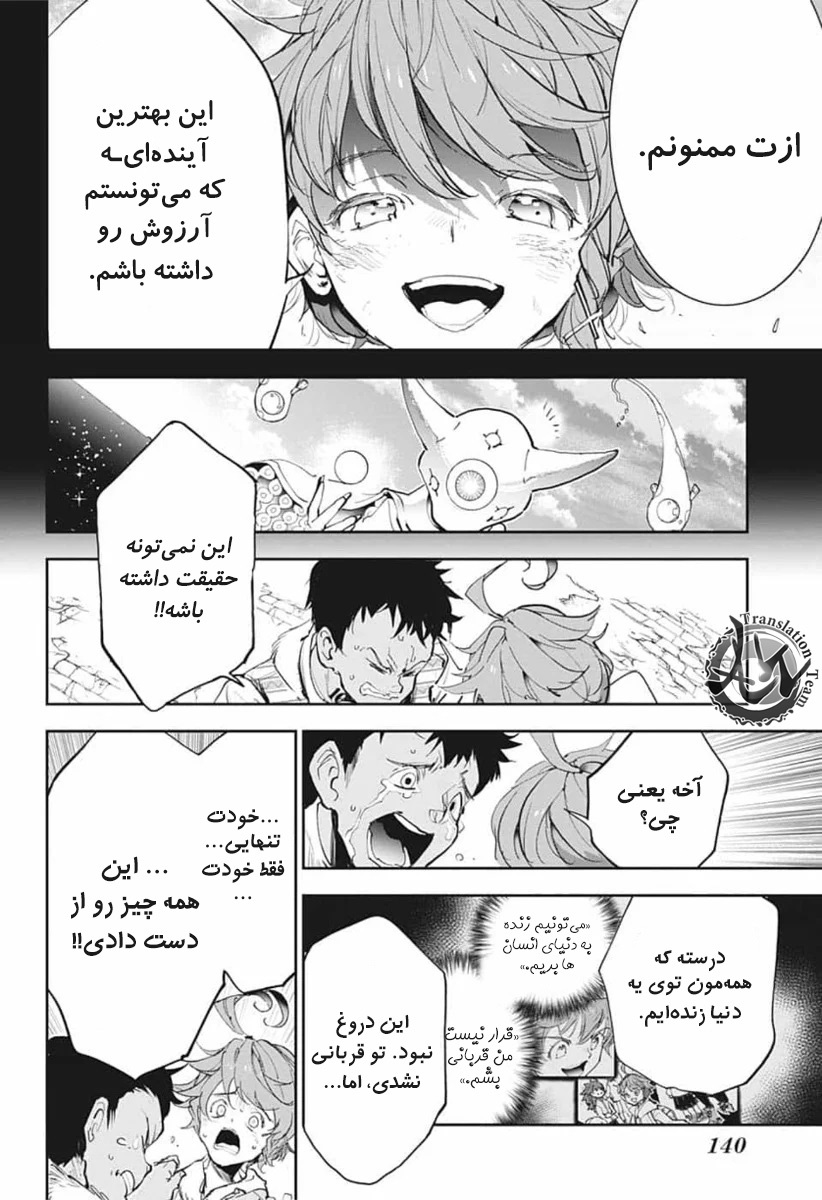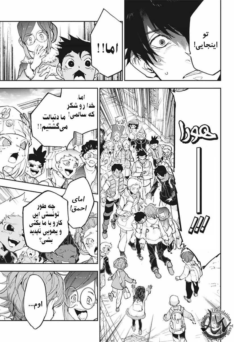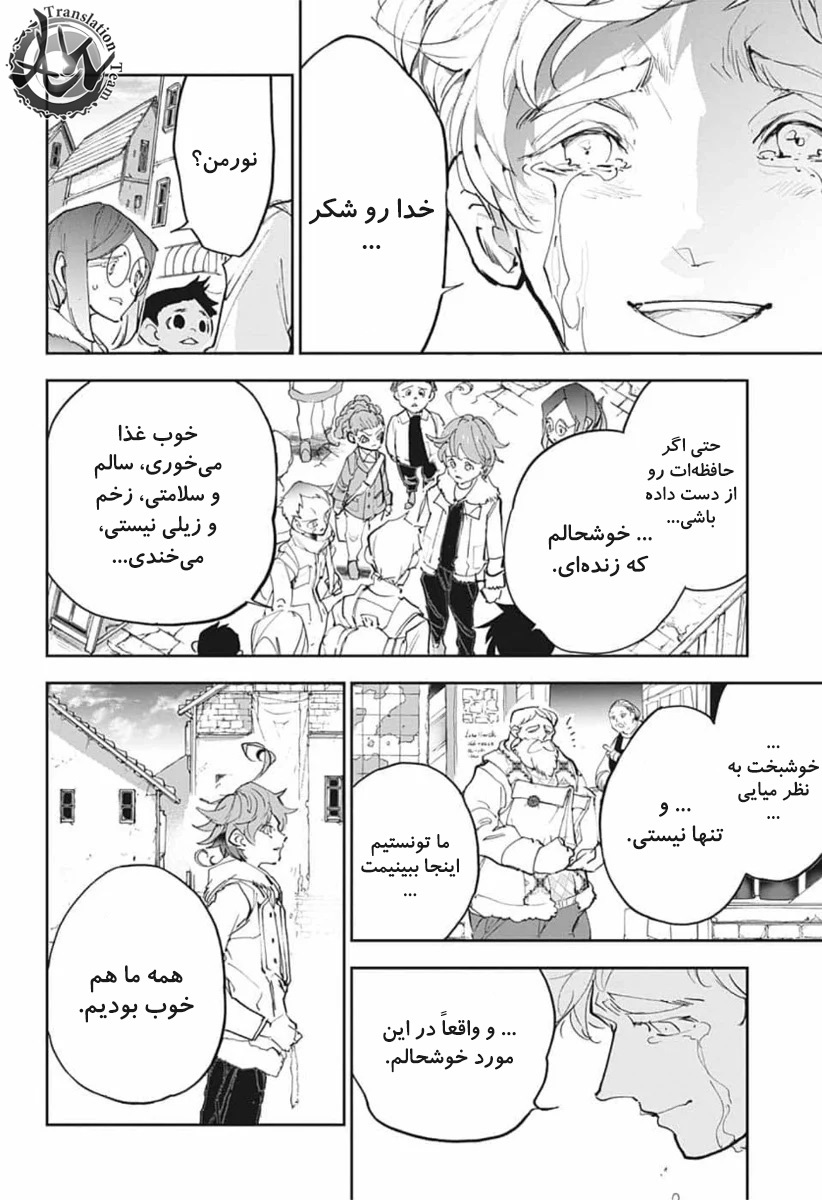 ولی ری میفهمه که اما از نقشه ی نورمن خوشش نیومده و میرن با نورمن حرف بزنن درست مثل انیمه اما فرقش اینه که توی انیمه میرن دنبال موجیکا و سونجو بگردن اما توی مانگا میرن به هفت دیوار و اگه بتونن پیمان جدید ببندن نورمن بیخیال نقشش میشه.