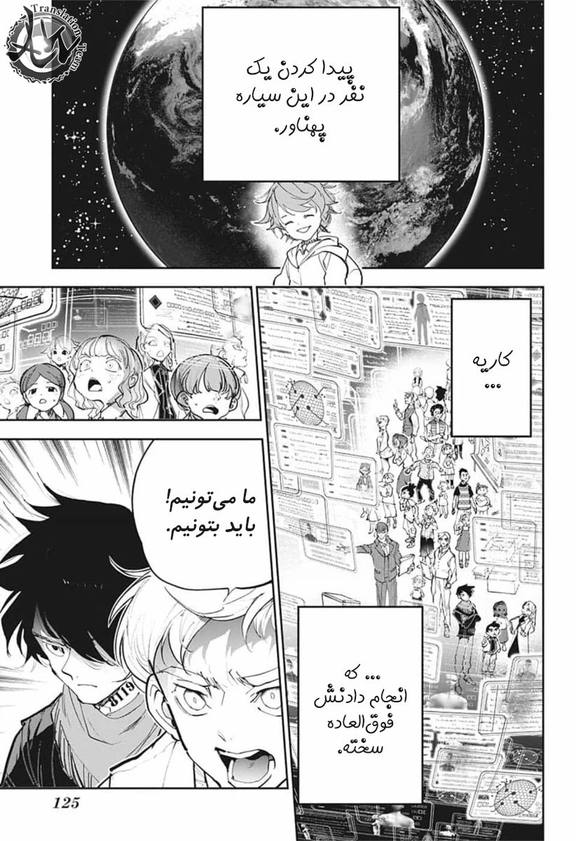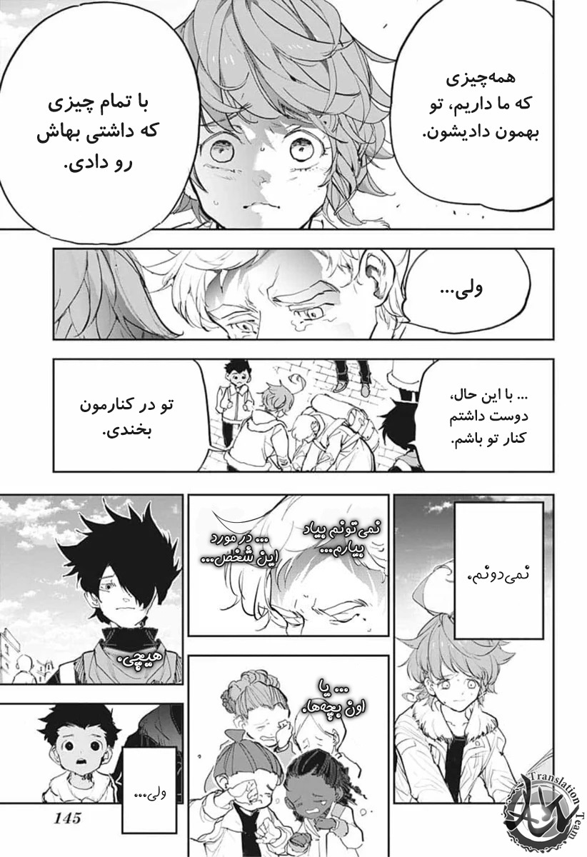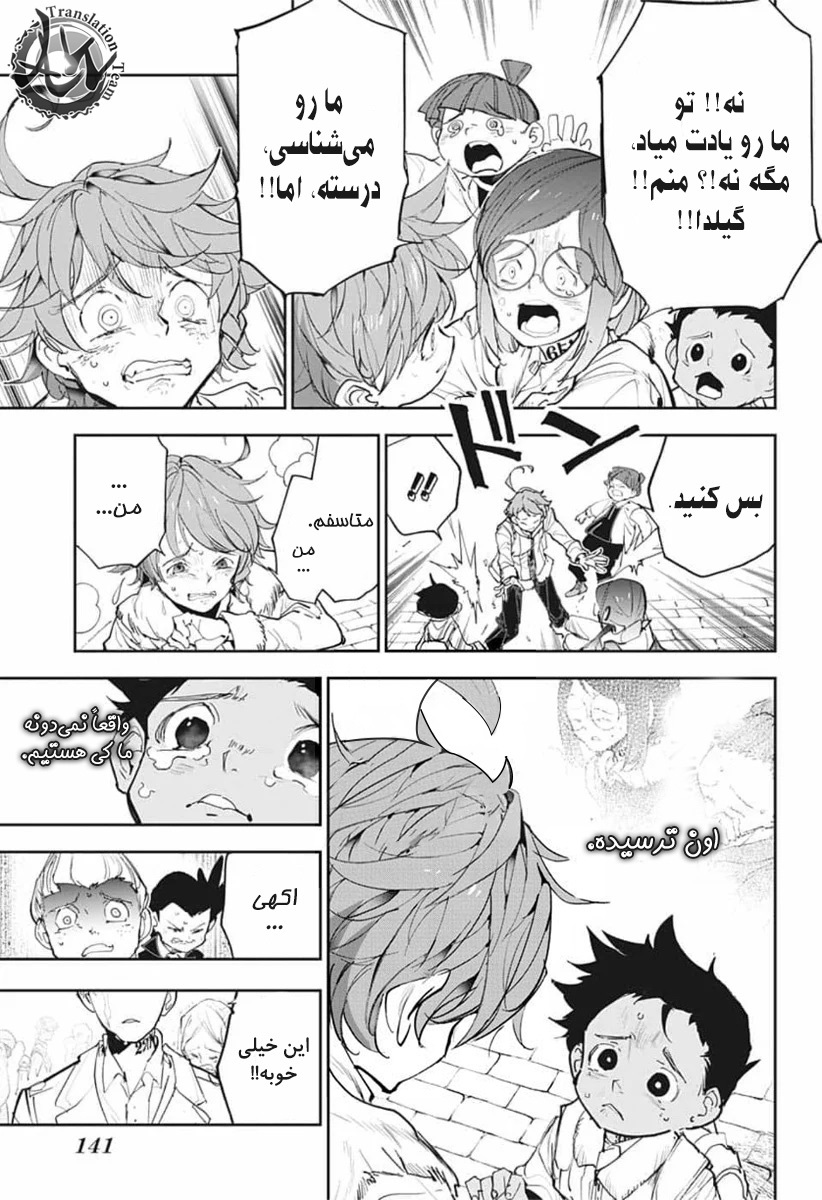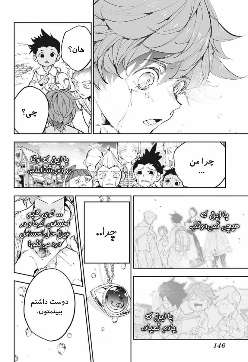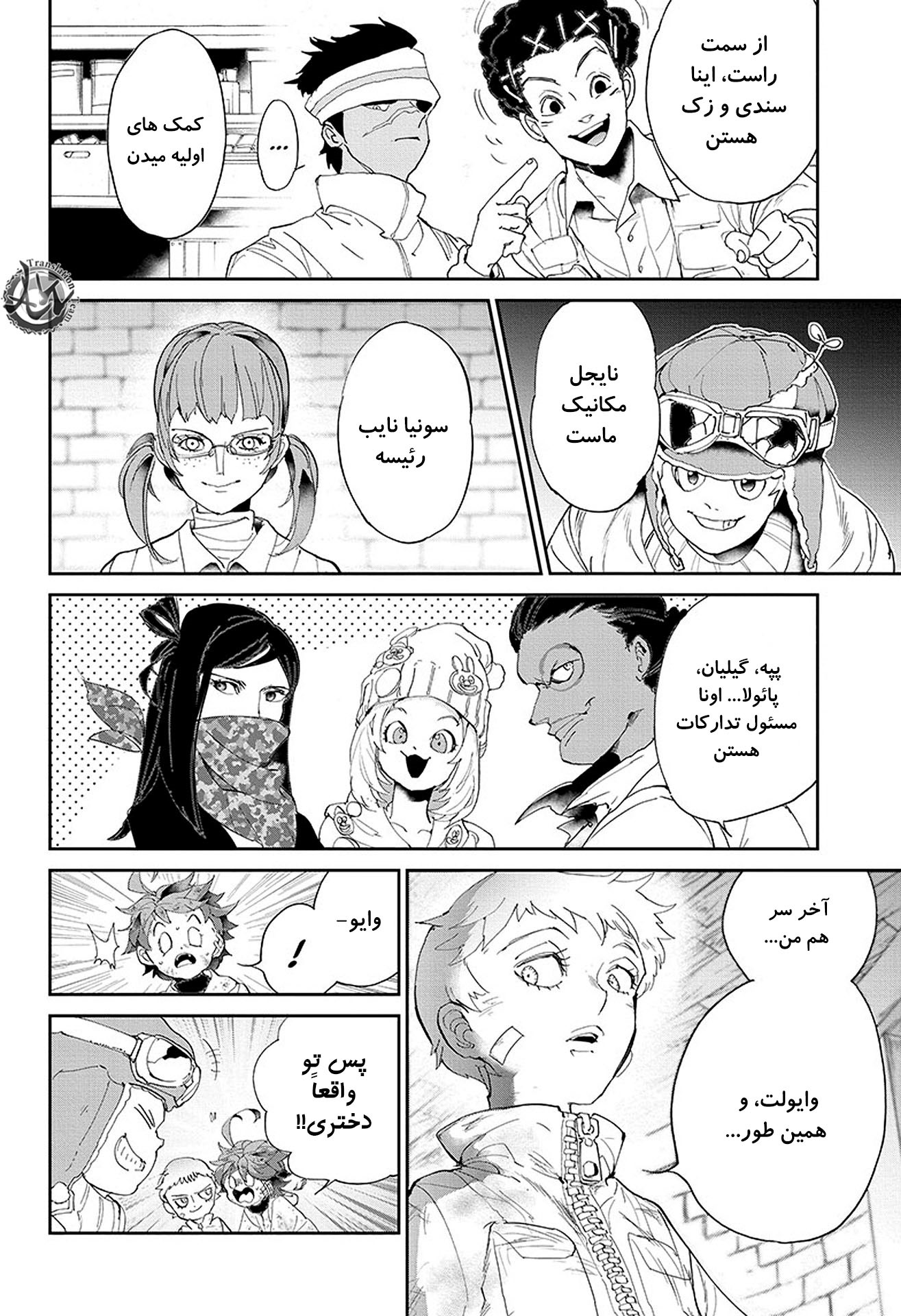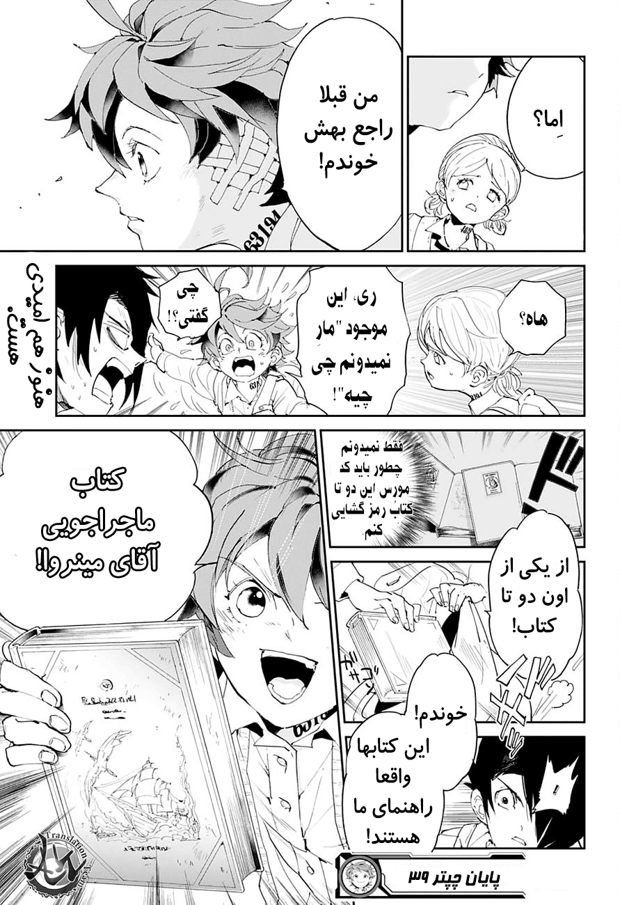 ولی ری میفهمه که اما از نقشه ی نورمن خوشش نیومده و میرن با نورمن حرف بزنن درست مثل انیمه اما فرقش اینه که توی انیمه میرن دنبال موجیکا و سونجو بگردن اما توی مانگا میرن به هفت دیوار و اگه بتونن پیمان جدید ببندن نورمن بیخیال نقشش میشه.