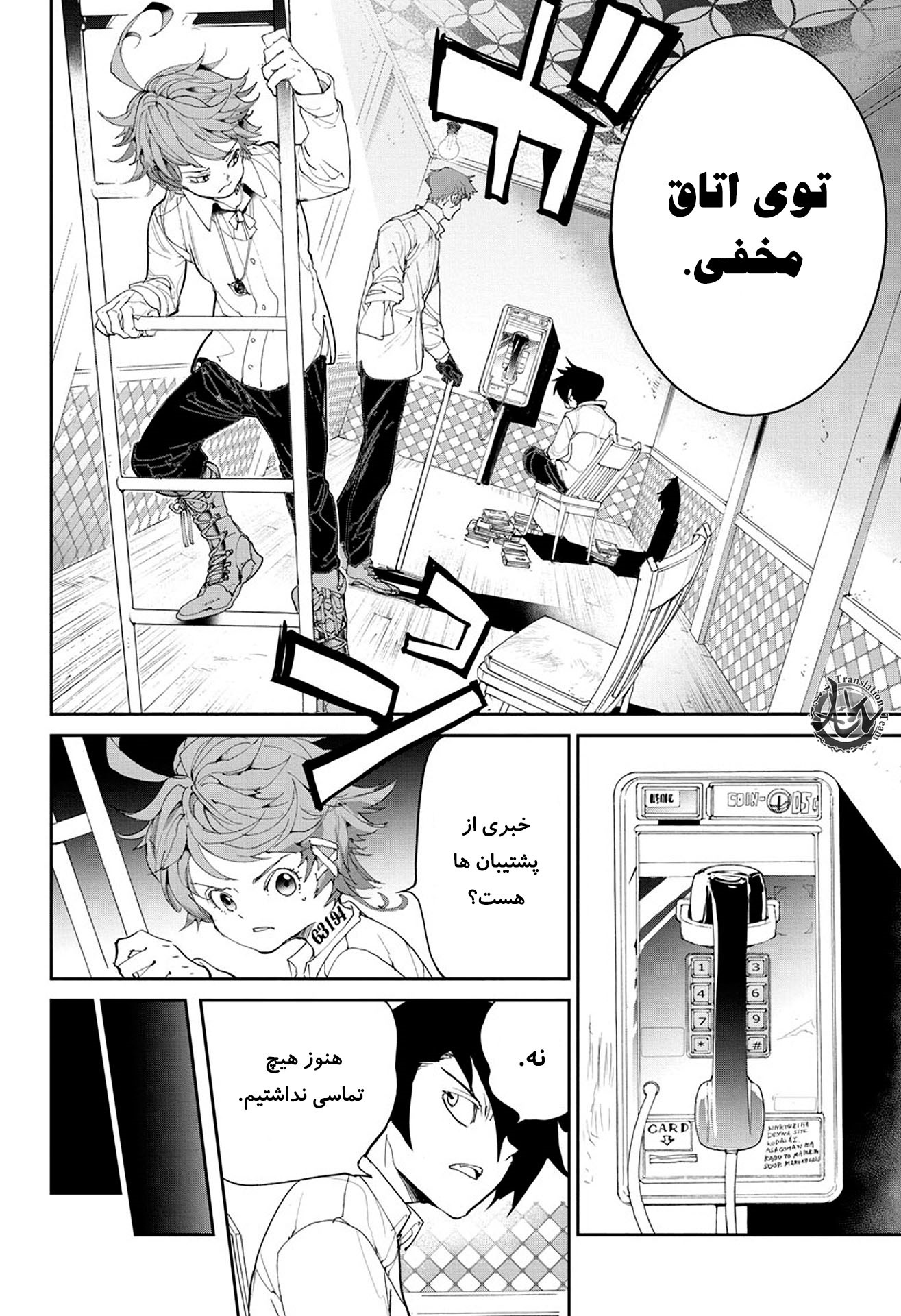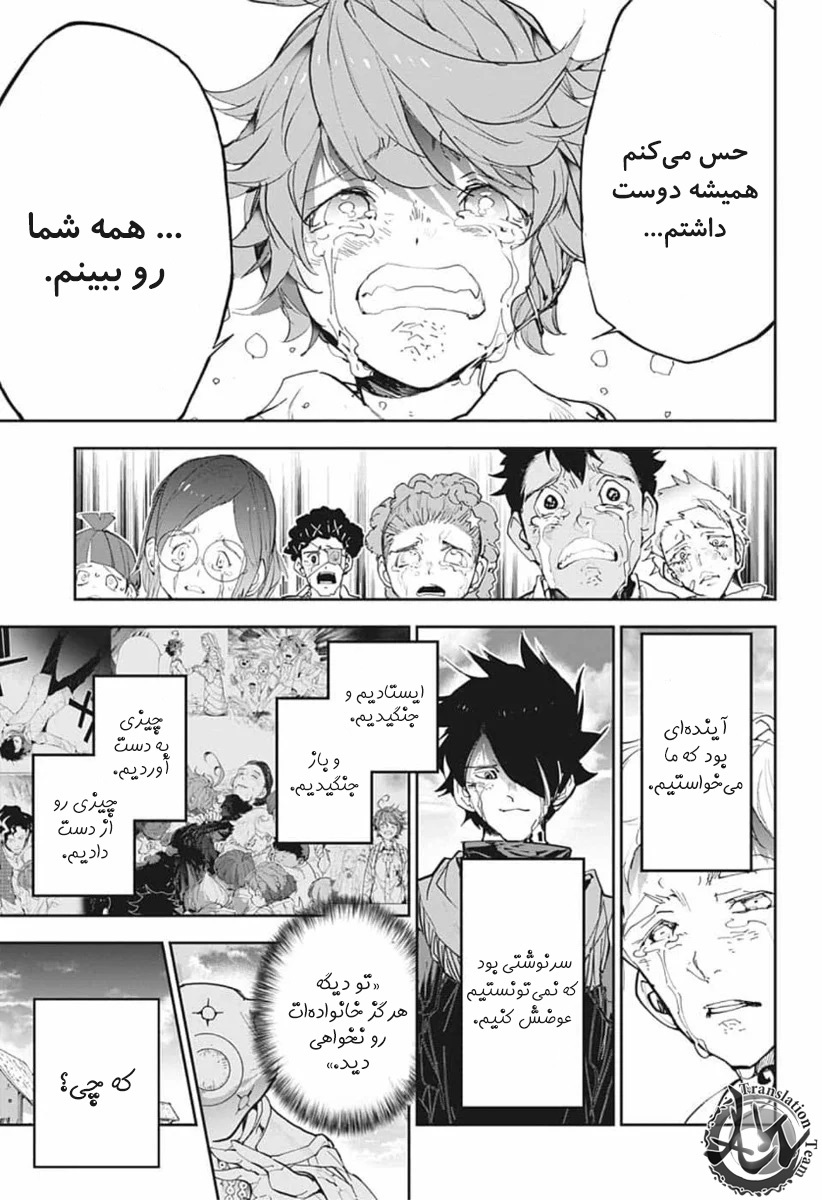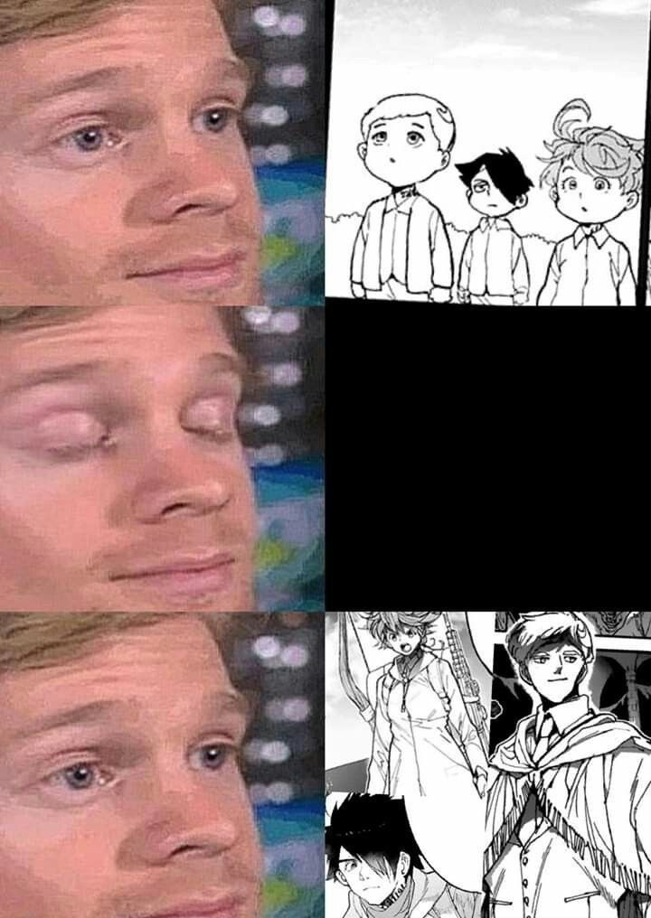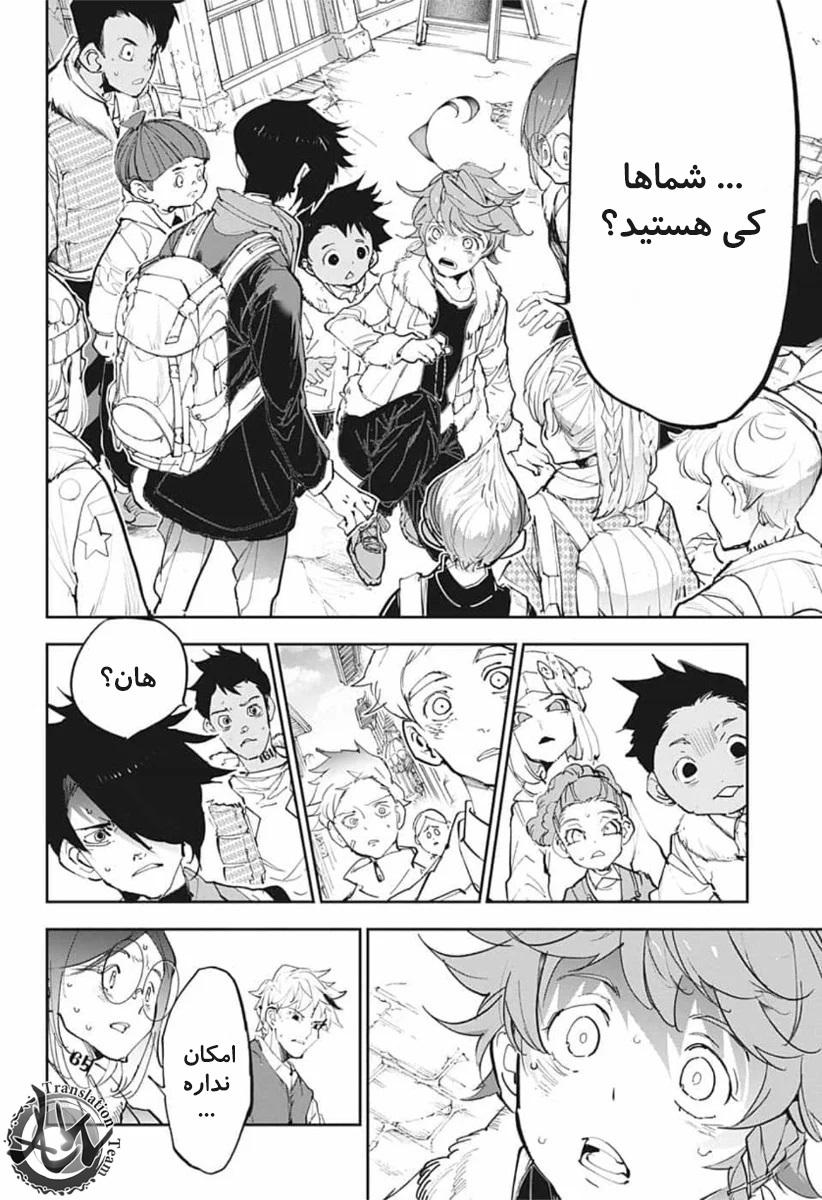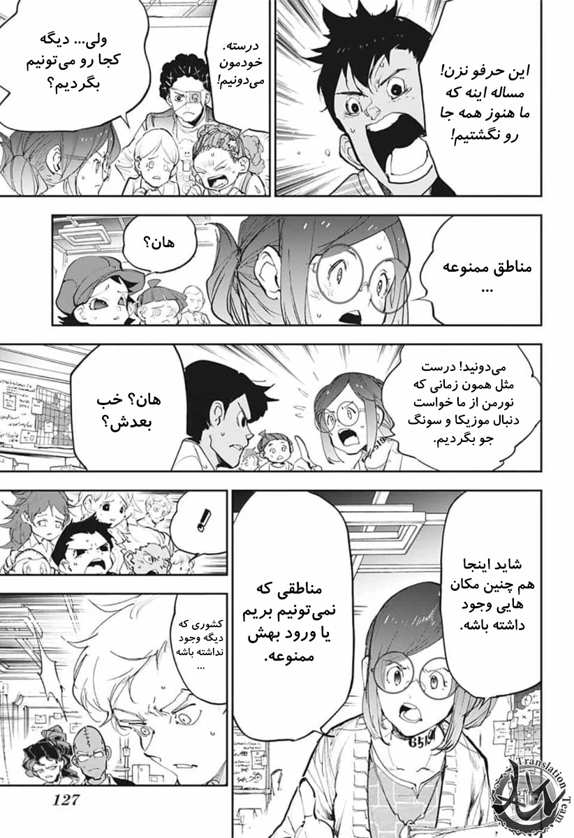 ولی ری میفهمه که اما از نقشه ی نورمن خوشش نیومده و میرن با نورمن حرف بزنن درست مثل انیمه اما فرقش اینه که توی انیمه میرن دنبال موجیکا و سونجو بگردن اما توی مانگا میرن به هفت دیوار و اگه بتونن پیمان جدید ببندن نورمن بیخیال نقشش میشه.