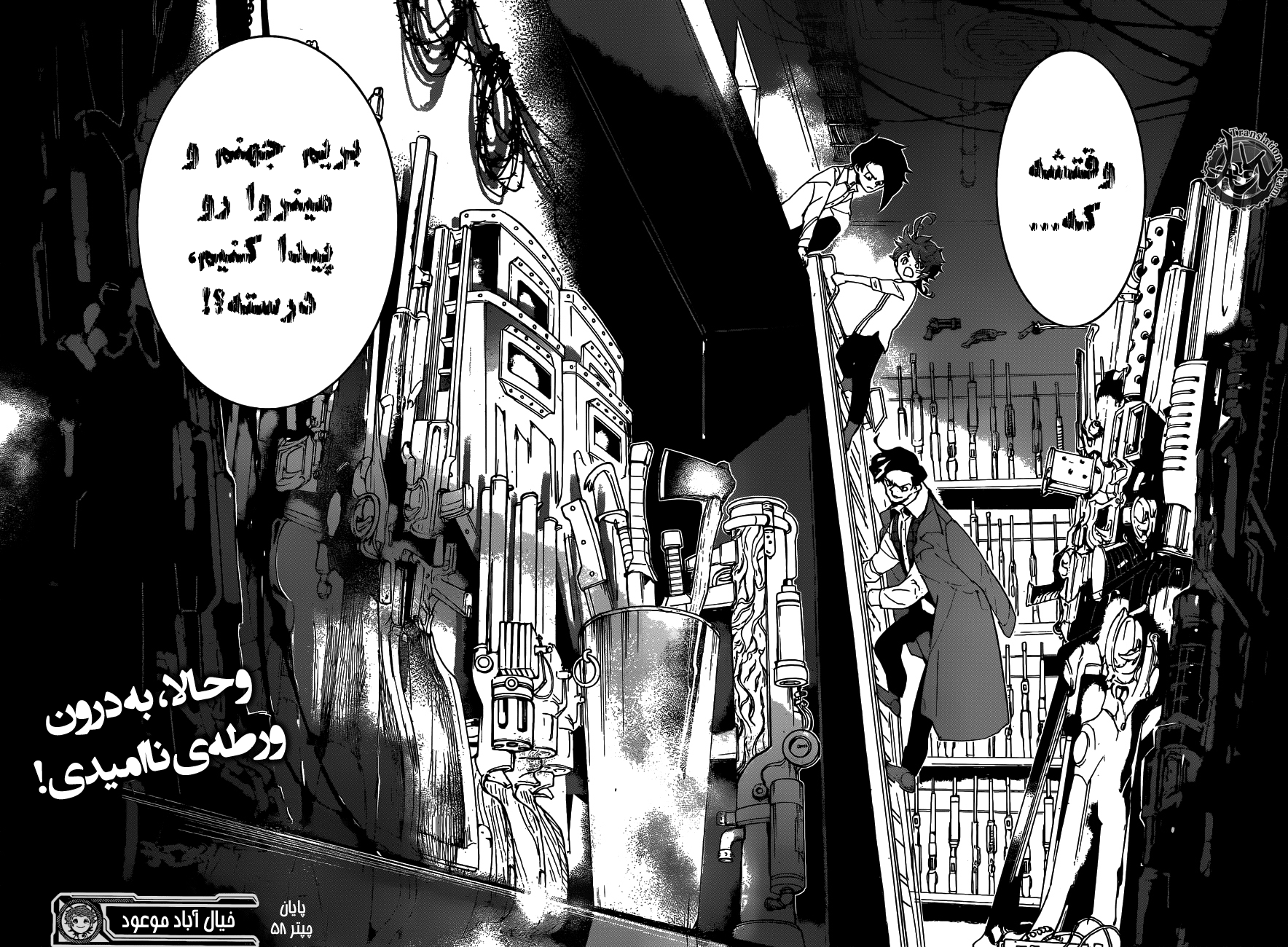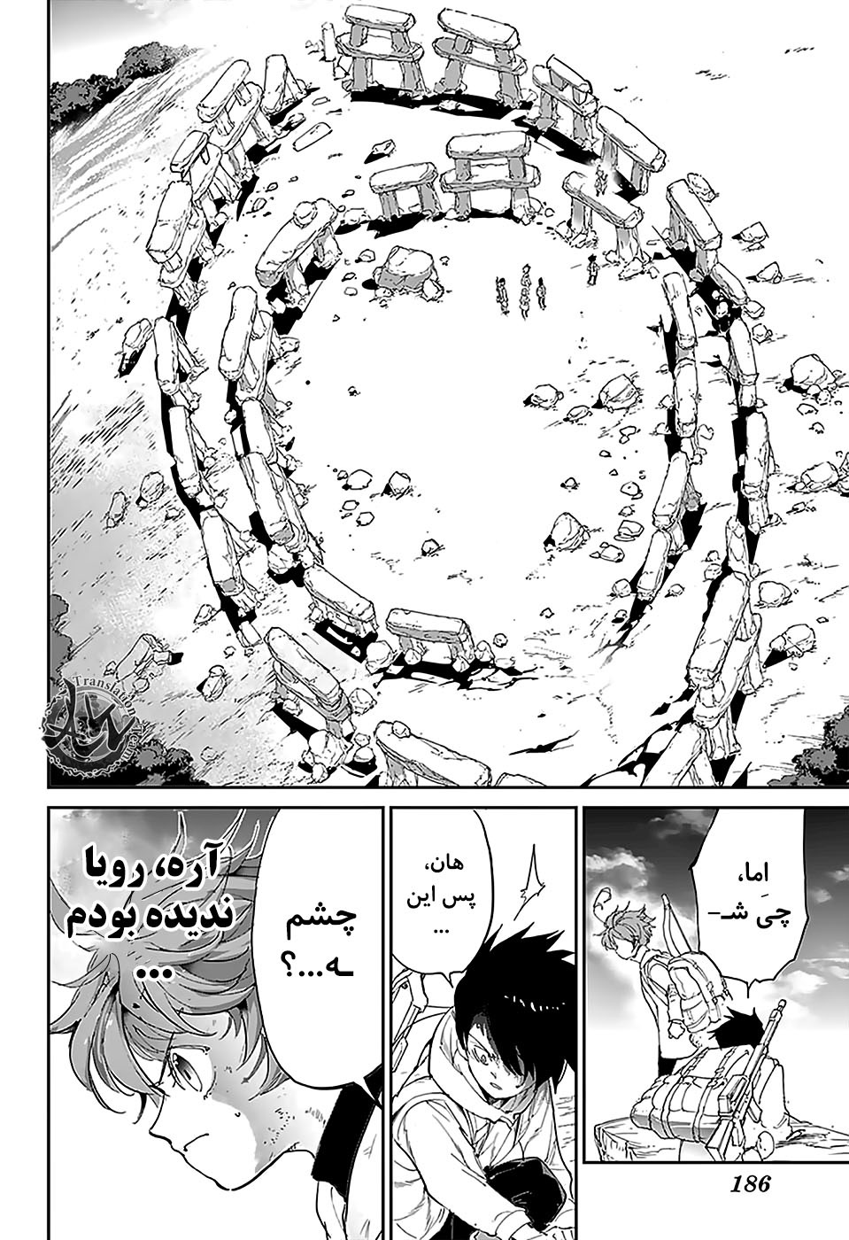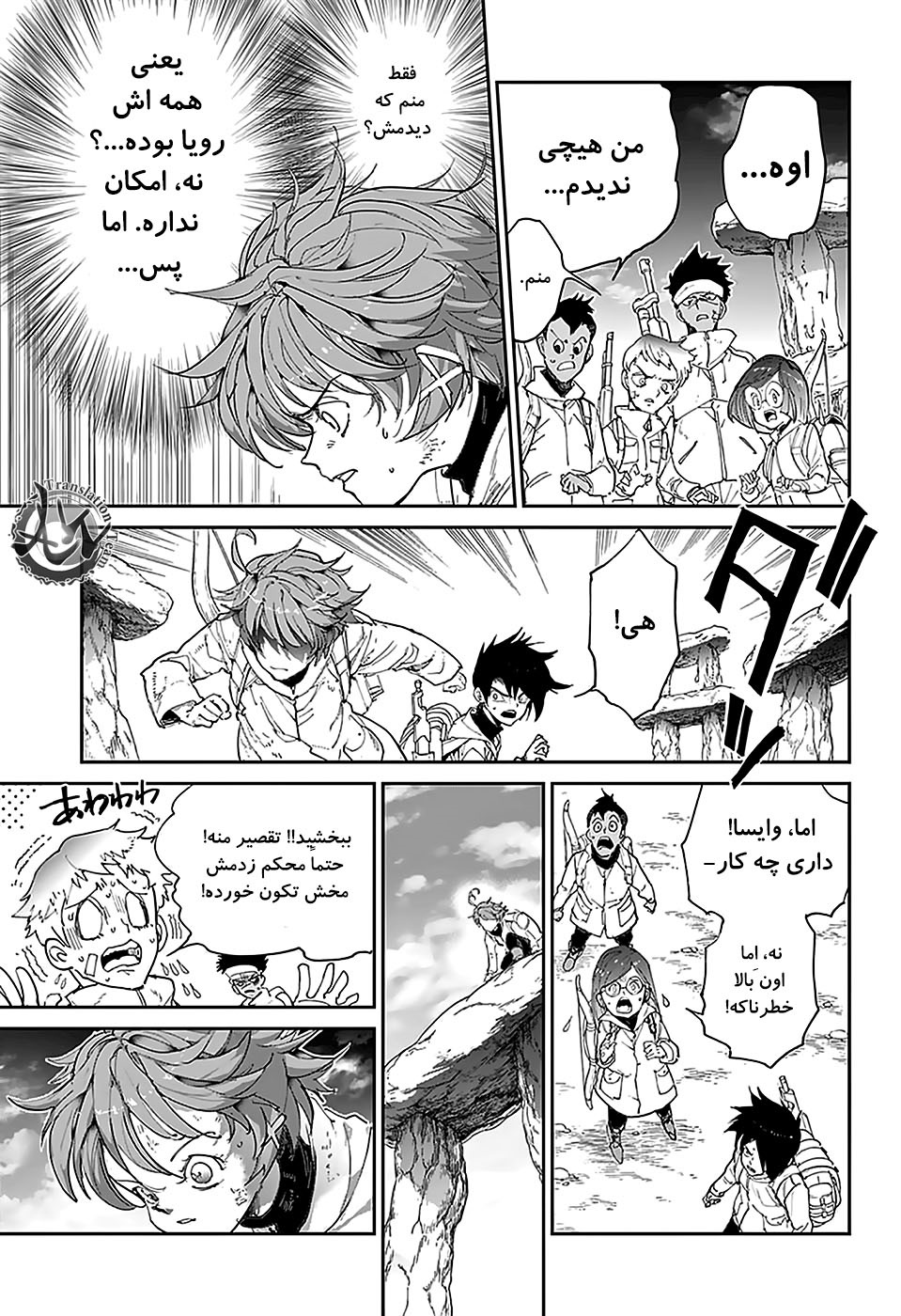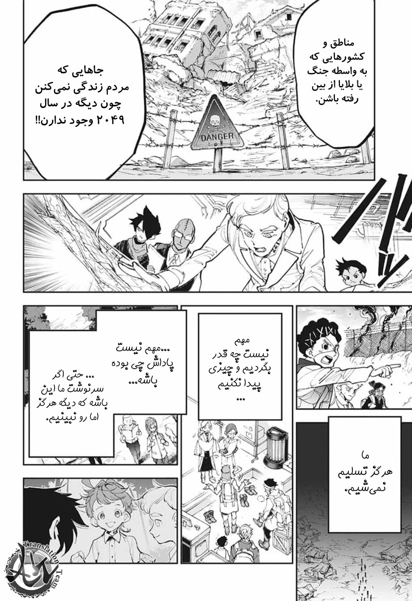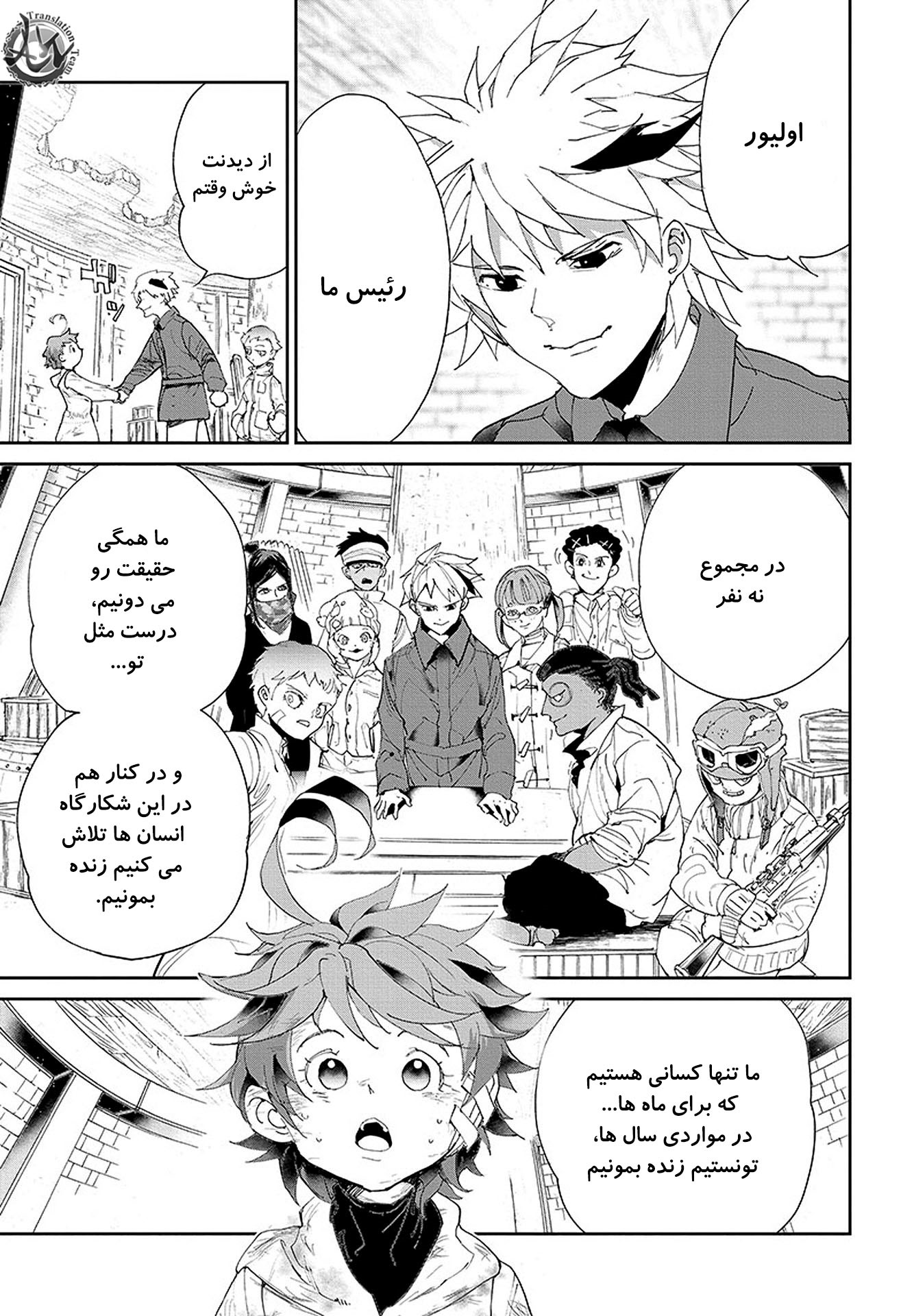 ولی ری میفهمه که اما از نقشه ی نورمن خوشش نیومده و میرن با نورمن حرف بزنن درست مثل انیمه اما فرقش اینه که توی انیمه میرن دنبال موجیکا و سونجو بگردن اما توی مانگا میرن به هفت دیوار و اگه بتونن پیمان جدید ببندن نورمن بیخیال نقشش میشه.