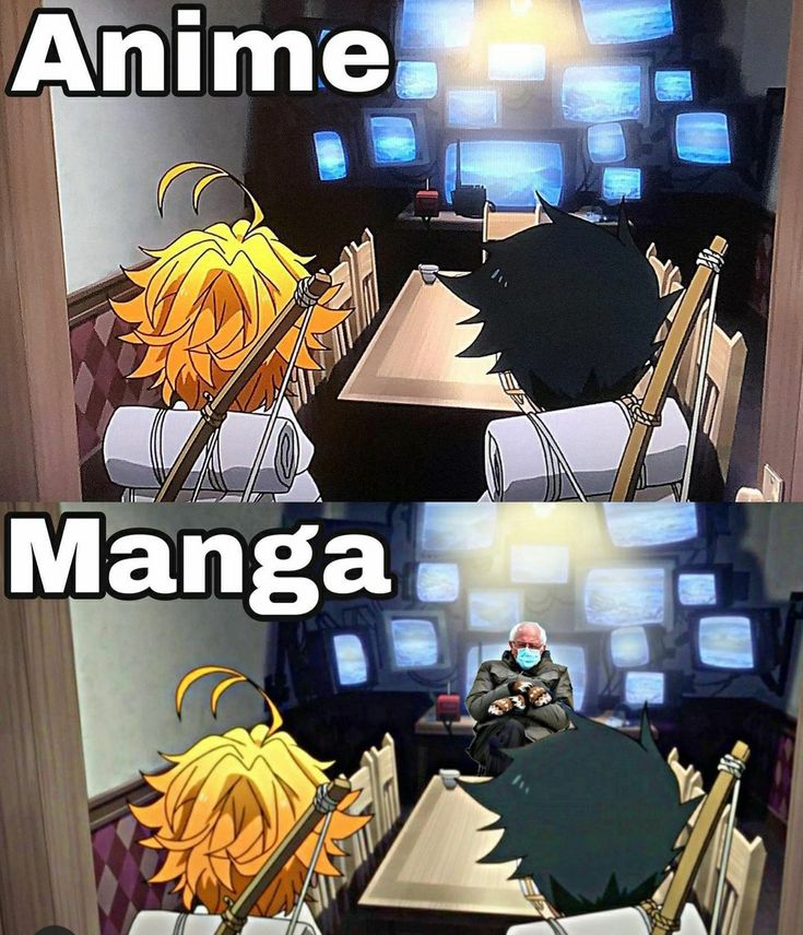 توی انیمه هم وقتی بقیه ی بچه ها بدنیای انسان ها میرن اما و ری و نورمن همراه با موجیکا و سونجو و اونهایی که واسه نورمن کار میکنن توی دنیای دیو ها میمونن و یچیز هایی نشون میده که درواقع همه ی اونها توی مانگاهم اتفاق میوفتن اما جور متفاوتی و با جزئیات بیشتر.
